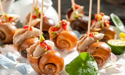 水果沙拉、德式土豆沙拉、意大利蔬菜汤、匈牙利牛肉汤、鲜虾啫喱、法式焗蜗牛、唐杜里烤龙利鱼、泰式罗勒炒牛柳、葡国鸡等