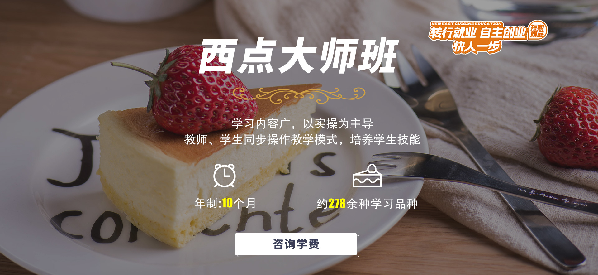 向日葵、纸杯蛋糕、花卉整体蛋糕实习、糖霜饼干、蜜桃百香气泡水、葡萄养乐多、摩卡咖啡、羊肉烩面、肉夹馍、牛肉至尊披萨、奶油意面、意大利田园沙拉;
